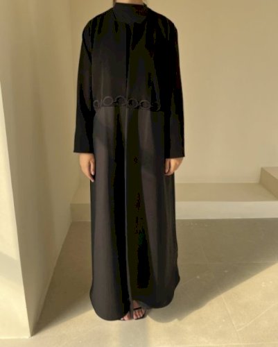 Black two-tone piping cloak
